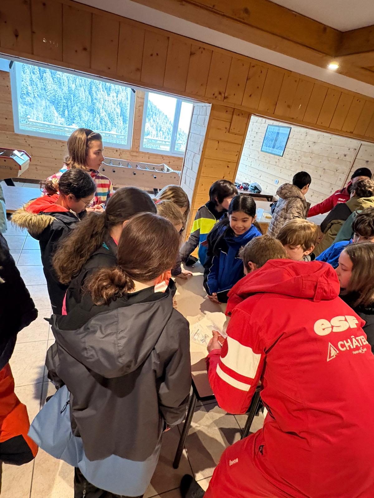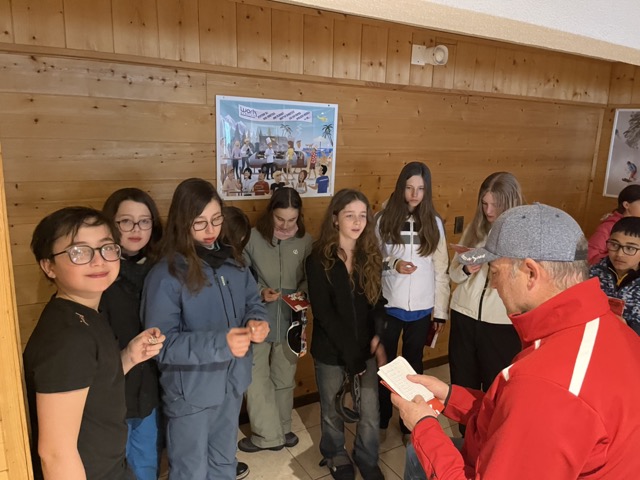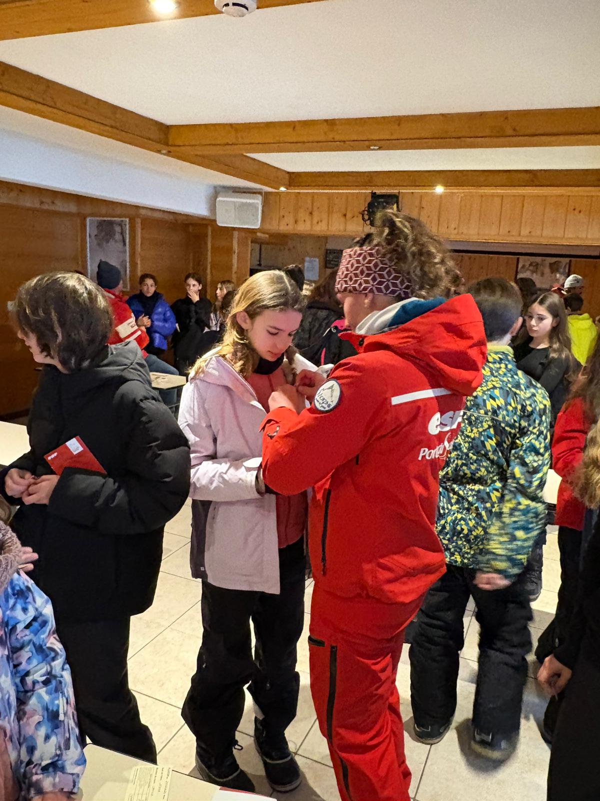 En fin d’après-midi, les moniteurs sont venus au chalet pour la remise des médailles. Un moment chaleureux et convivial.